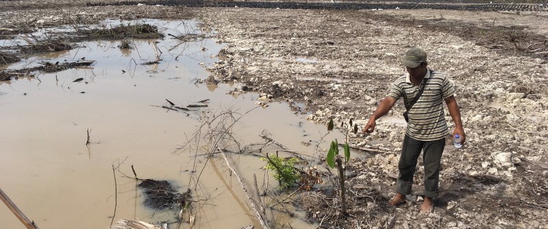 “See what is left of our rubber trees”, says Titik, the leader of a group of angry villagers. After a magnificent boat ride through majestic forest, I met his group in Rawang, Central Kalimantan, standing at the edge of a seemingly endless muddy field, full of felled tree trunks. They point to a few leaves growing out of the mud – a sapling of a rubber tree, and proof that they once had valuable rubber trees there. Now excavators are preparing the land (their land!) for another massive palm oil plantation.
